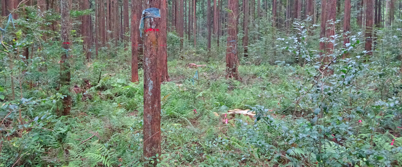 Φ森林環境研究所が開発した防災水源かん養路網や中層間伐などにより、森林の持つ公益的機能を維持しながら、継続的に森林からの収益を所有者様にお届けしています。